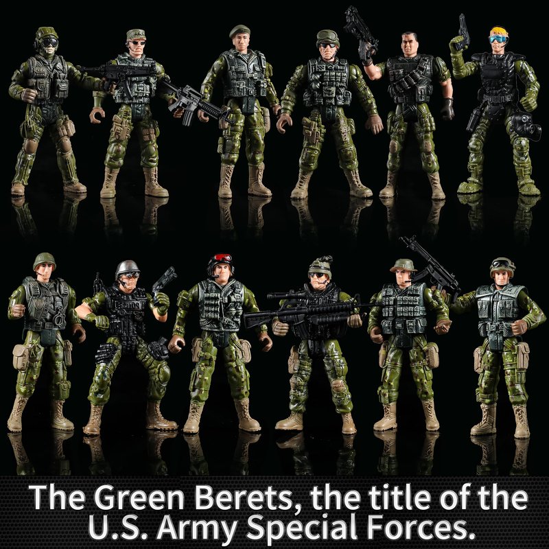 - Authentic military configuration: Based on the United States Army Special Forces/Green Beret A-Team for setup, including 12 army men action figures and a plastic U.S. military flag.