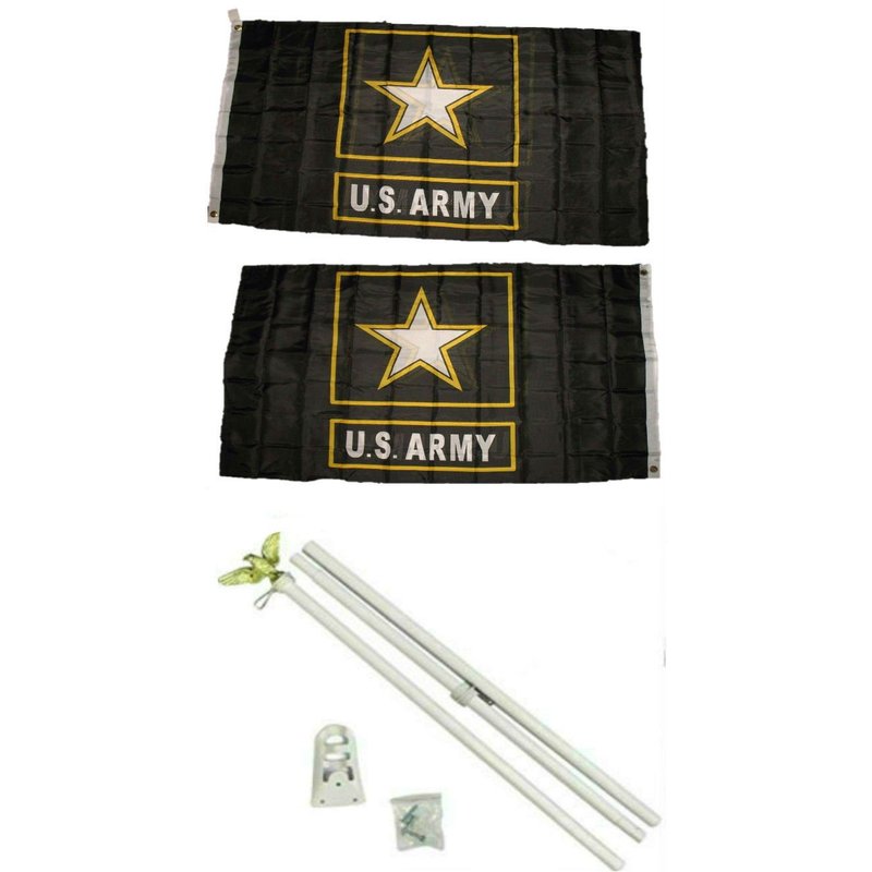 Army Star 3'x5' Polyester 2 Ply Double Sided Flag With 6' White Flag Pole Kit With eagle Topper