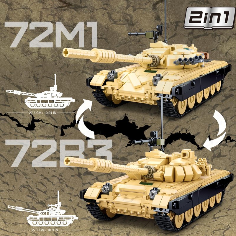 - 【Ideal Gift】This 72B3/72M1 tank set seamlessly blends fun with creativity, with 770 pieces of toy blocks, a colorful gift box, and detailed instructions, it is a good gift choice for both children aged 6-12 years old and adults, such as sons, teenage nephews, boyfriends, husbands, military fans, and especially tank enthusiasts. It is perfect as a gift for Christmas, birthdays, New Year's, Easter, or any other special occasion.