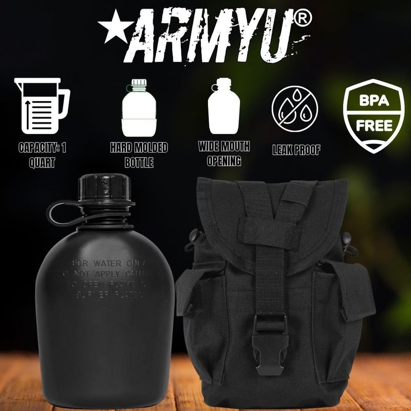 - 1 QUART CANTEEN + UTILTY POUCH: Canteen is BPA Free. This full set is complete with everything you need, ensuring that you get the best quality and craftsmanship. Whether you're a military or law enforcement personnel or a civilian looking for reliable outdoor gear, this canteen and pouch combo is a must-have for staying hydrated and organized on the go.