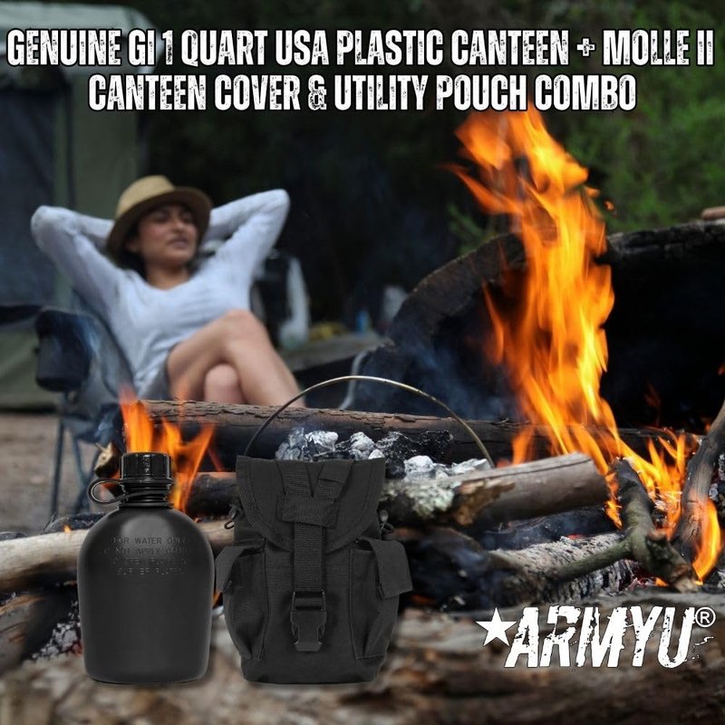 - COMPLETE CANTEEN SOLUTION: Our Genuine GI 1 Quart USA Plastic Canteen + MOLLE II Canteen Cover & Utility Pouch provides a complete solution for staying hydrated on the go. The canteenholds up to 1 quart of water, while the MOLLE II canteen cover and utility pouch allow for easy carrying and storage of the canteen and other essentials.