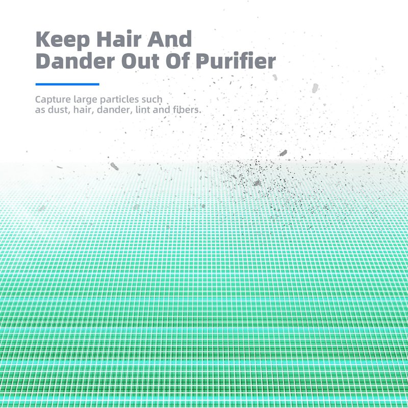 - Prevent Clogging: When hairs, dander, and other large particles meet the pre-filter layer, they will be captured them and keep it outside to prevent the air purifier from clogging.