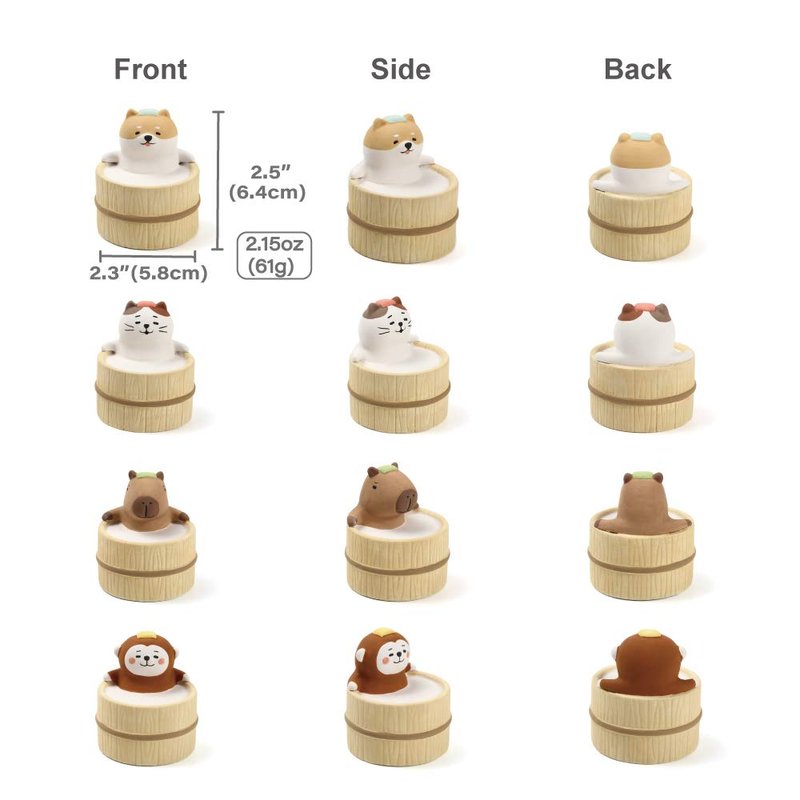 - [ Size, Weight, and Material ] Bathing animals: Approx. 2.3 x 2.3 x 2.5 inch ( 5.8 x 5.8 x 6.4 cm) 2.15oz (61g) Animals with heart: Approx. 2.0 x 2.0 x 2.2 inch (5 x 5.2 x 5.6 cm) 1.76oz (50g) Material: Ceramic