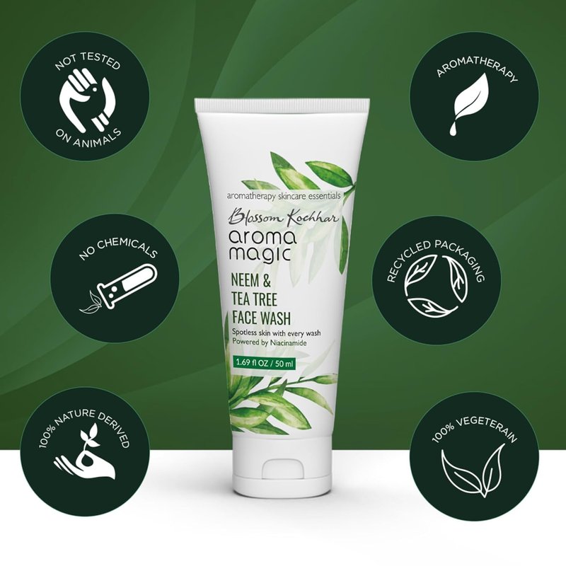 - Gentle Yet Effective: Aroma Magic Neem and Tea Tree Face Wash is a gentle yet powerful cleansing solution designed for acne-prone skin.