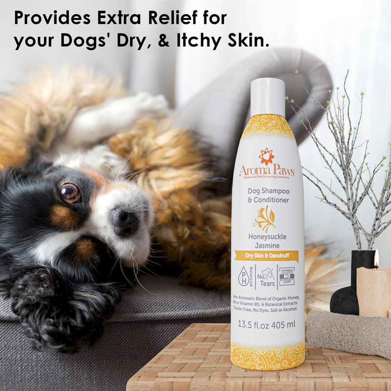 Aroma Paws Luxury Dog Shampoo & Conditioner, Dry Skin & Dandruff Relief Formula, Honeysuckle