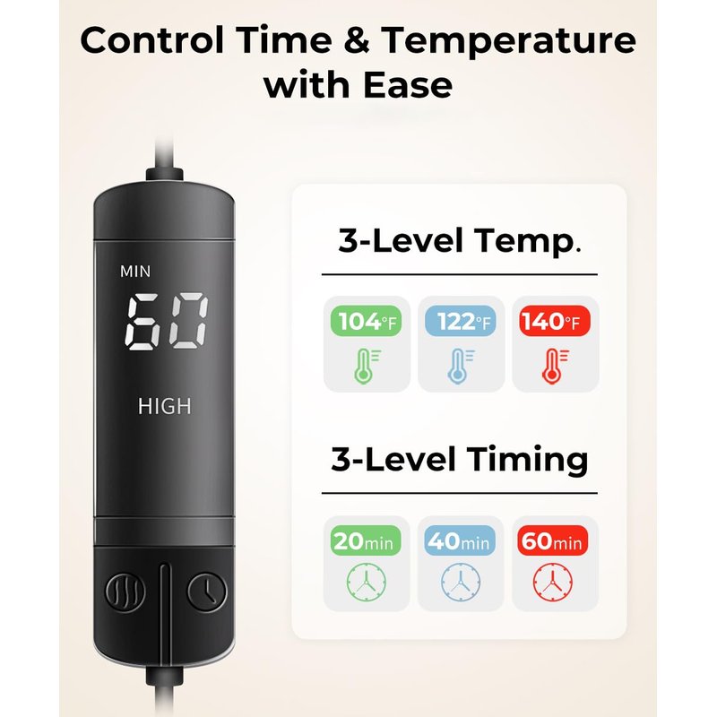 - 【Easy setting on heat and time】It's design to have 3 levels heating from 104℉ to 140℉ and 3 levels timing from 20 to 60 minutes. A 20 minutes warm therapy is always suggested for relieve eye uncomfortableness.
