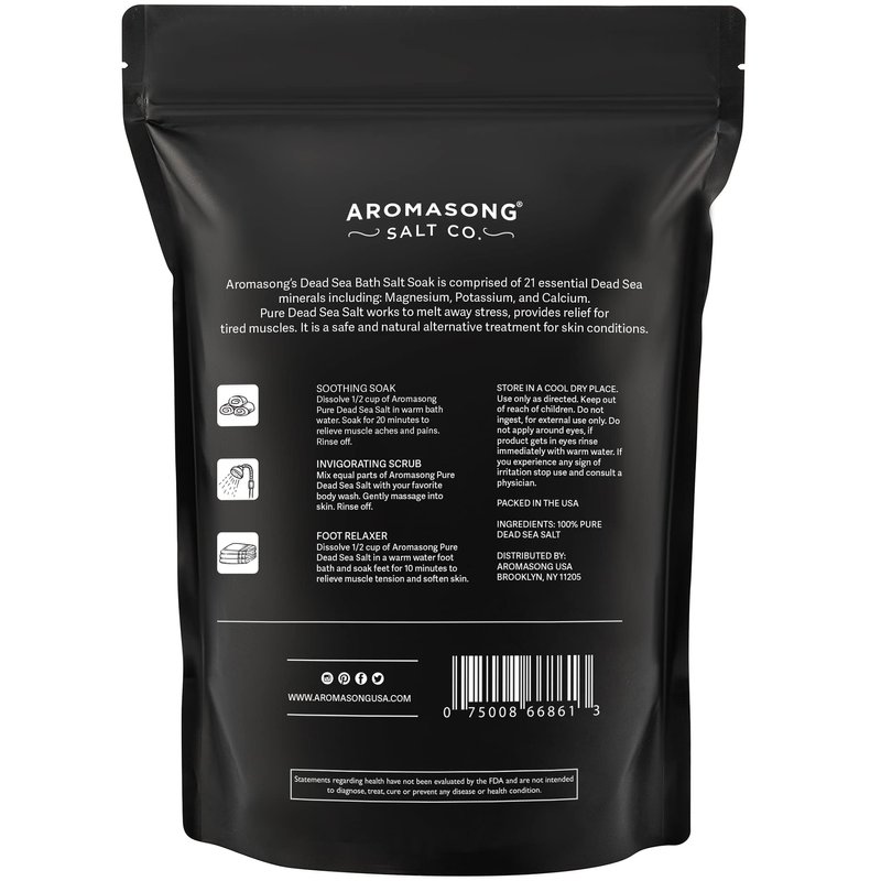 - 100% PURE: Aromasong Dead Sea Bath Salt products are 100% pure mineral Salt, it has NOT been mineral depleted with other Salts, Will make your dry skin feel great and smooth like never before!