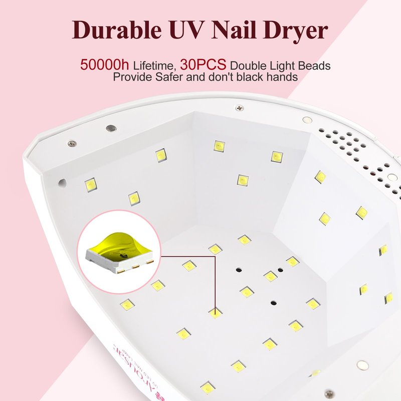 - Heat Dissipation Hole Design - UV nail dryer built-in heat dissipation hole, timely release heat, extend service life. The painless low-heat mode is safer than the high-wattage lamp, effectively protecting your hands. Diamond appearance design and the easy cleaning feature guarantees a hygienic nail experience.
