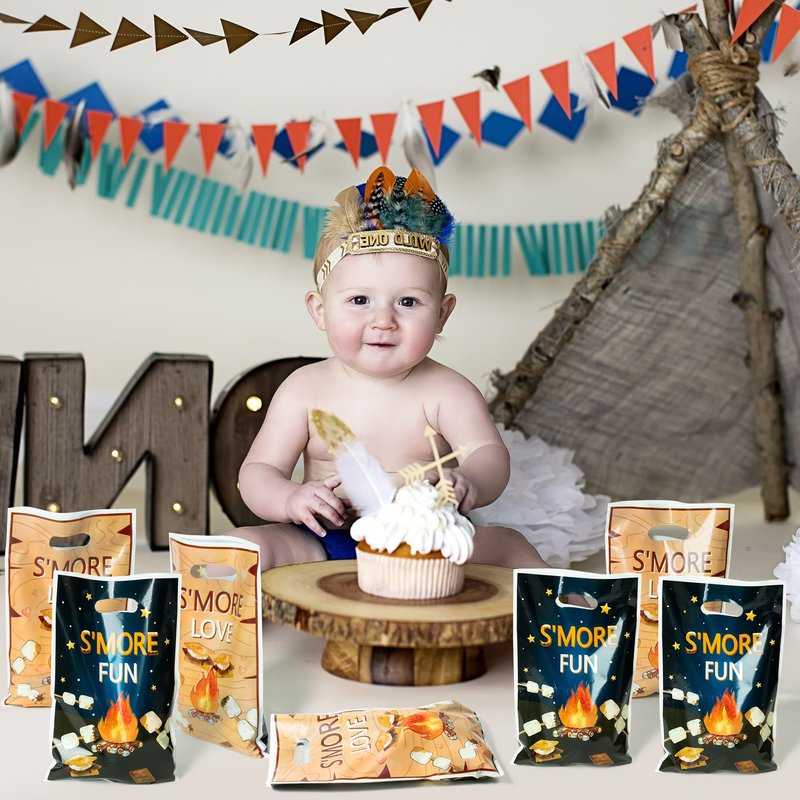- S’more Camping Theme Design: Our party decorations bags are designed with s'mores campfire patterns which create a classic camping scene. The beautiful camping-themed patterns and bright colors that are perfect for daily use or as decorations for camping-themed parties.