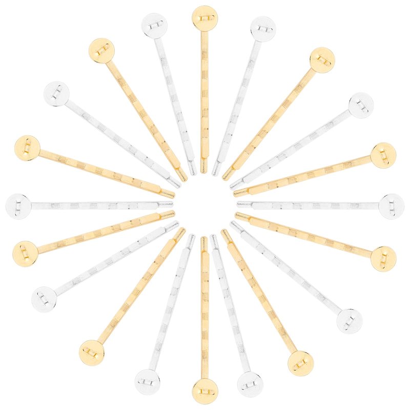 arricraft 100 Pcs Hair Pin Findings, Iron Bobby Pins with 8mm Brass Flat Round Tray, Hair Clips Bases for Diy Headwear Accessories, Silver and Golden