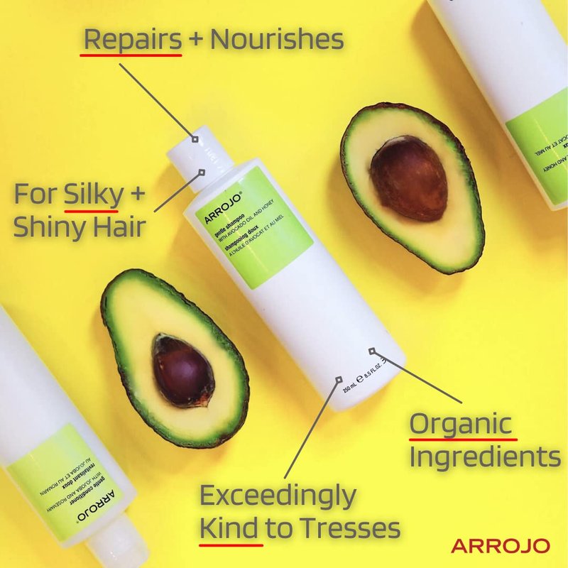 ARROJO Gentle Sulfate Free Shampoo – Gentle Shampoo to Repair & Nourish - Hair Shampoo w/Vitamin B5, Avocado Oil & Honey - Lightly Scented Cleansing Shampoo – Paraben Free Shampoo