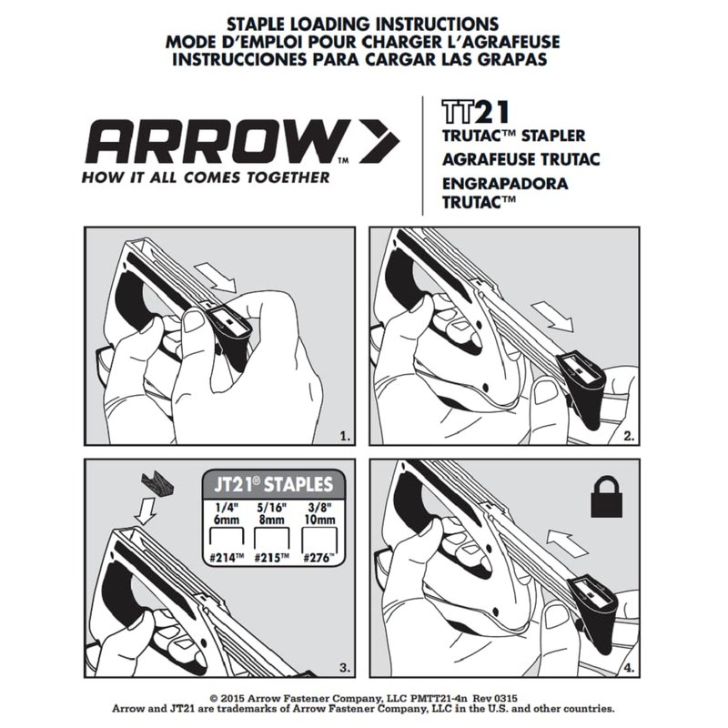 - CHOOSE THE RIGHT STAPLES: TruTac stapler uses Arrow JT21 fine wire staples (sold separately) in 1/4”, 5/16”, or 3/8”; Viewing window takes the guesswork out of knowing when to reload; Bottom-load magazine makes it easy to load; See video for instructions