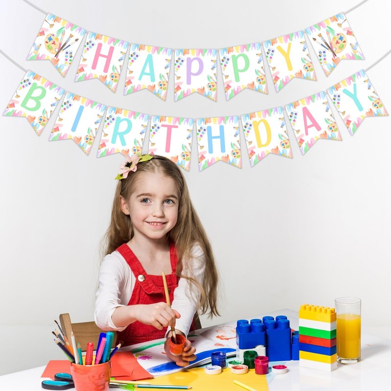 - Art Birthday Party Decorations: You will get 1 art happy birthday banner, they are made of hard card paper, durable and not easy to tear.