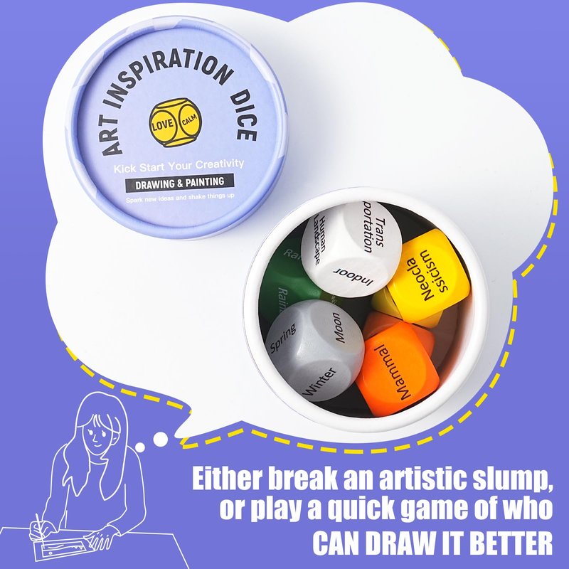 - 【Play Individually or Together with Others】Suitable for solo play, as well as engaging with friends and family during a delightful game night or fostering creativity and collaboration in art classroom. With a roll of the dice you can either break an artistic slump, or play a quick game of who can paint it better.