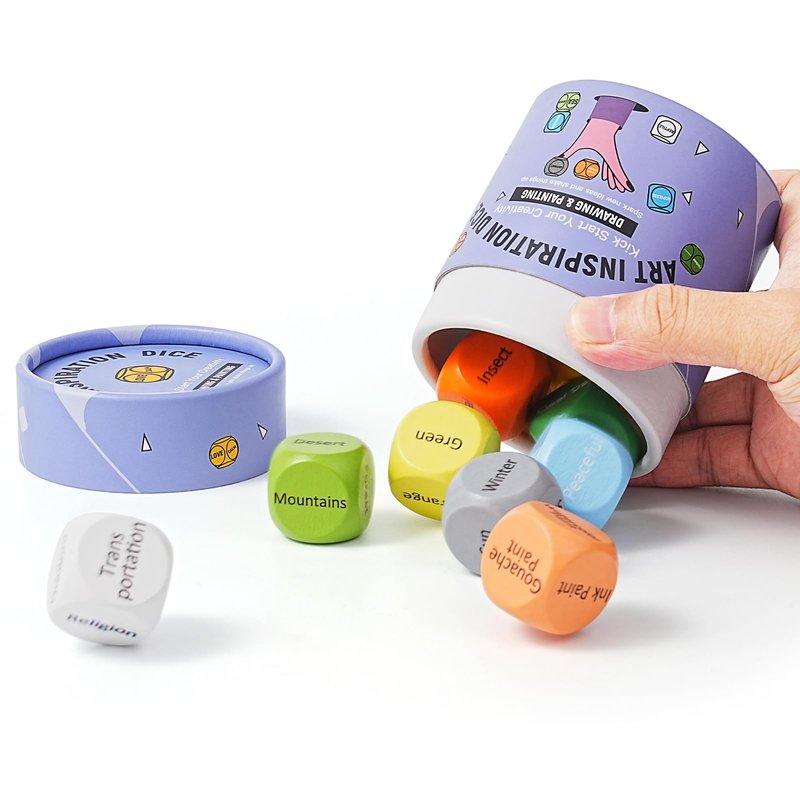 - 【A Great Way to Get Creative and Challenge Yourself】In a creative rut? Get this wooden art dice! You will like the clunky sound they make when dropped. Maybe you are not painting things that will immortalize, but these art dice will jump start your creative spark and be a relaxation tool at the same time.