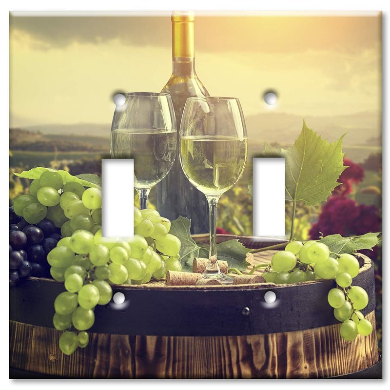 - Wine theme printed image on a 2 gang toggle OVER SIZED - OVERSIZE solid metal Wall plate.
