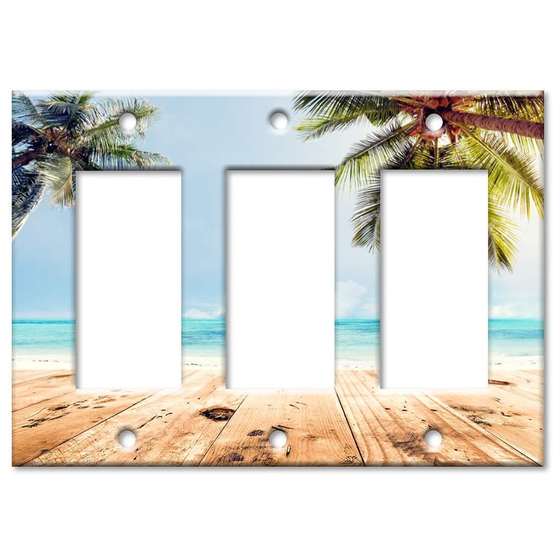 - Beach theme printed image on a 3 gang rocker, decora, decorator, or GFCI solid metal Wall plate. Art Plates 3 Gang Decora - GFCI Wall Plate - Beach View from the Walkway