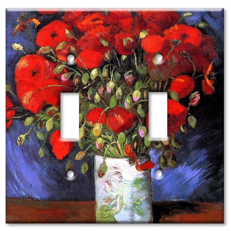 Art Plates - Double Gang Toggle OVERSIZE Switch Plate - OVER SIZE Decorative Metal Wall Plate - Van Gogh: Poppies - (Made in USA)