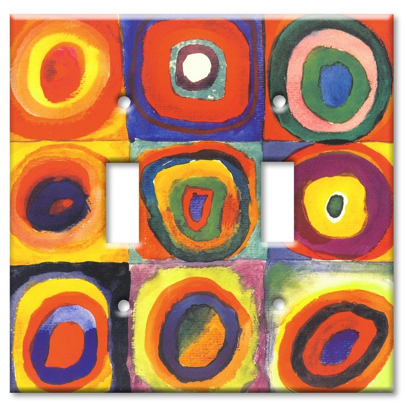 Art Plates - Double Gang Toggle Switch Plate - Kandinsky: Farbstudie Quadrate - (Made in USA)
