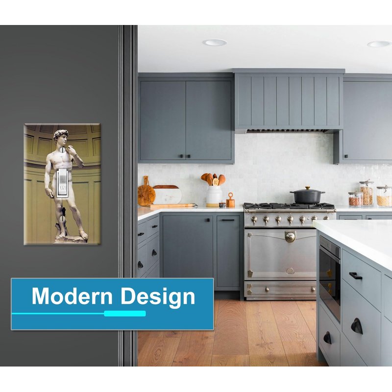 - Michelangelo's David Single Gang Toggle Wall Plate - Art Plates switch plates and electrical outlet covers are created using a special, high resolution, ultra violet printer that prints directly on our American made, heavy duty, metal switch plates.