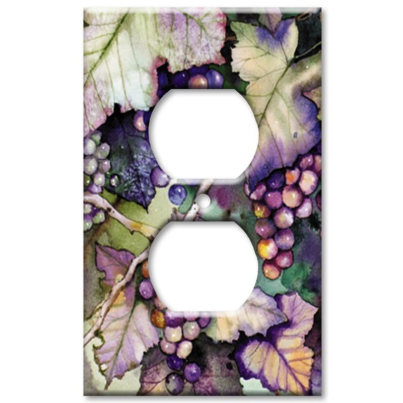 Art Plates - Outlet Cover OVERSIZE Switch Plate - OVER SIZE Decorative Metal Wall Plate - Grapes and Leaves - (Made in USA)