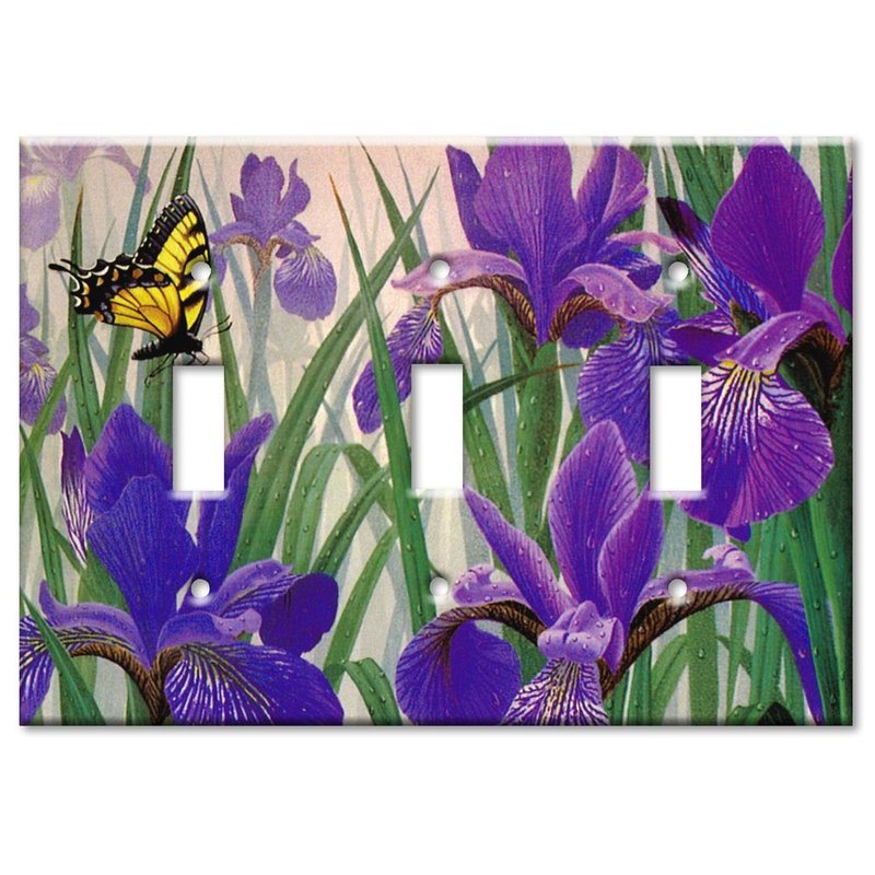 - Art Plates Brand Decorative Printed Triple Gang Toggle Switch Plate - Butterfly in Irises