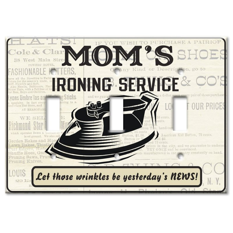 Art Plates - Triple Gang Toggle OVERSIZE Switch Plate - OVER SIZE Decorative Metal Wall Plate - Mom's Ironing Service - (Made in USA)
