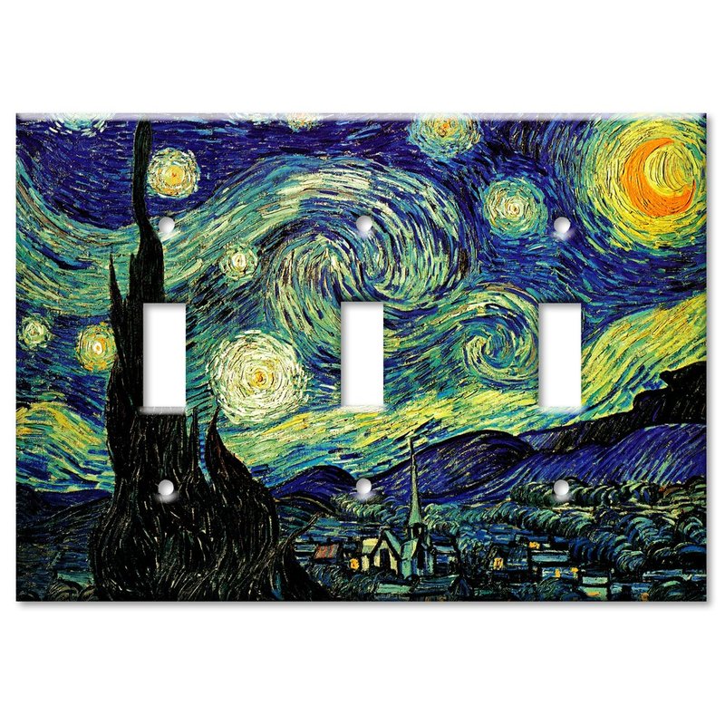 - Art Plates Brand Decorative Printed Van Gogh: Starry Night Metal Switch Plate - Triple Gang Toggle