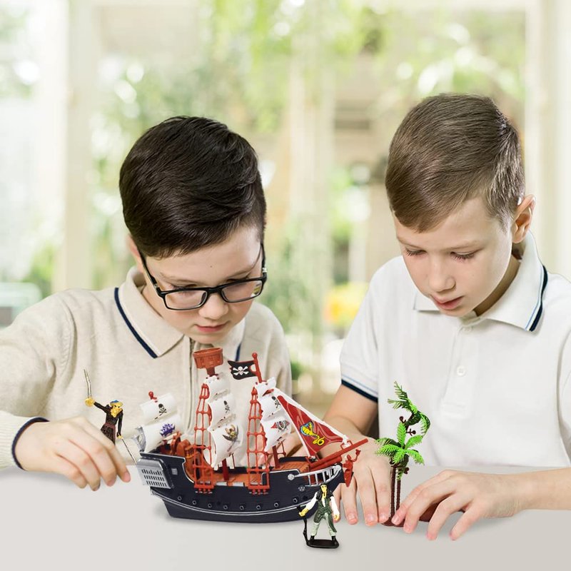 - HOURS OF IMAGINATION: The perfect treat for that budding buccaneer! This pirate adventure play set includes a 10” pirate ship, 2 pirate action figures, and a tree. Surprise that kiddo and watch them get immersed in creative pretend play for hours.