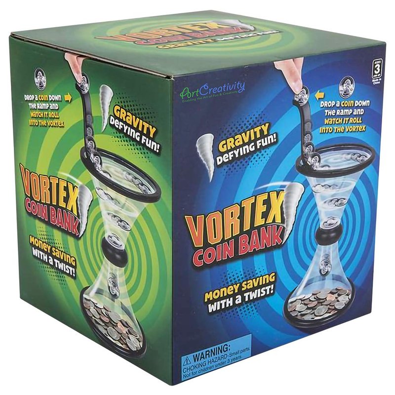 - BEST GIFT IDEA: Looking for a unique holiday or birthday gift to make that boy or girl smile? Get them this vortex coin bank and make them beam. It’s the perfect gift for any occasion, makes a cool game or contest prize, and comes in a colorful printed box that inspires excitement at first glimpse.