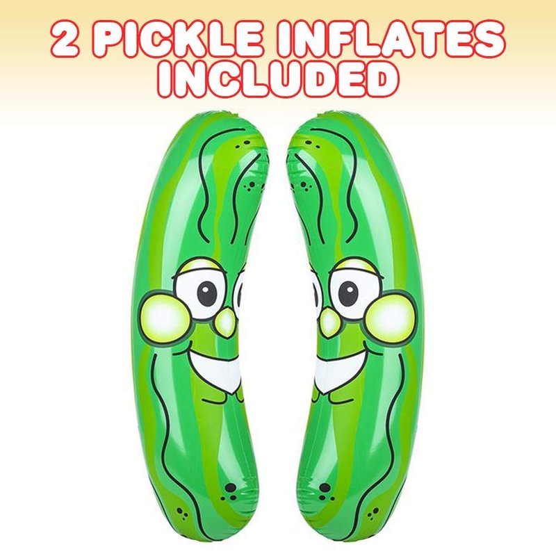 - MAKE EVERYONE SMILE: Pickle inflates that exude fun, delightful vibes! This pack comes with a SET OF 2 inflatable pickles sporting cute smiles and designed with a vibrant touch of green. Easily inflate them using your mouth or a hand pump and spread instant cheer.