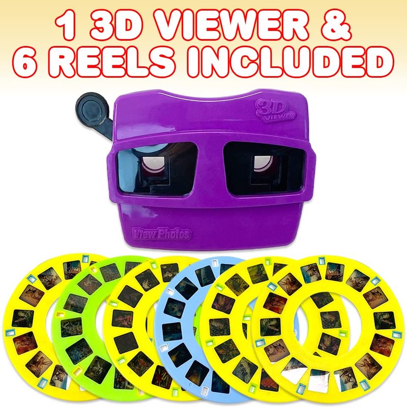 - EASY TO USE: What a great way to make your kiddo smile. This pack comes with 1 3D viewer with 6 reels, all packaged in a colorful box. The reels are not only amazing to look at, but easy to use as well. Come up with interesting stories to go with the reels and watch your kiddo marvel.