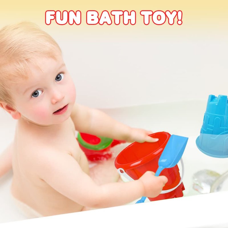 occupied for hours! This beach toys set contains 2 beach pails and 2 beach shovels with a vibrant touch of color. But the beach
