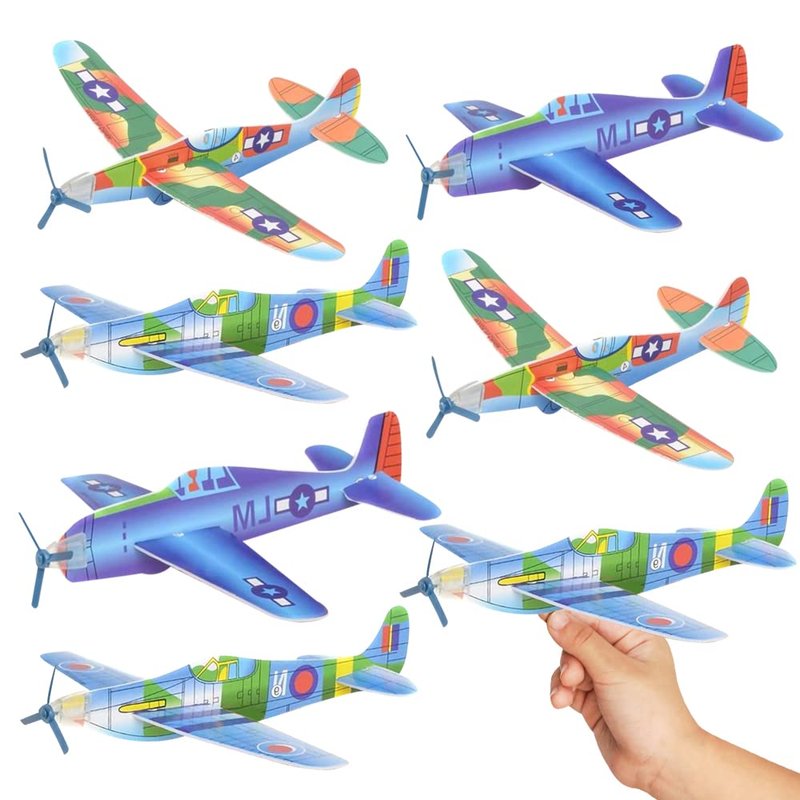 - INCREDIBLE GLIDING FUN: Launch them in the air and watch them soar! This set comes with a total of 12 (8”) foam glider planes that little ones will love. Each of the flying plane toys is individually packed. This makes dishing them out to excited kiddos a breeze.