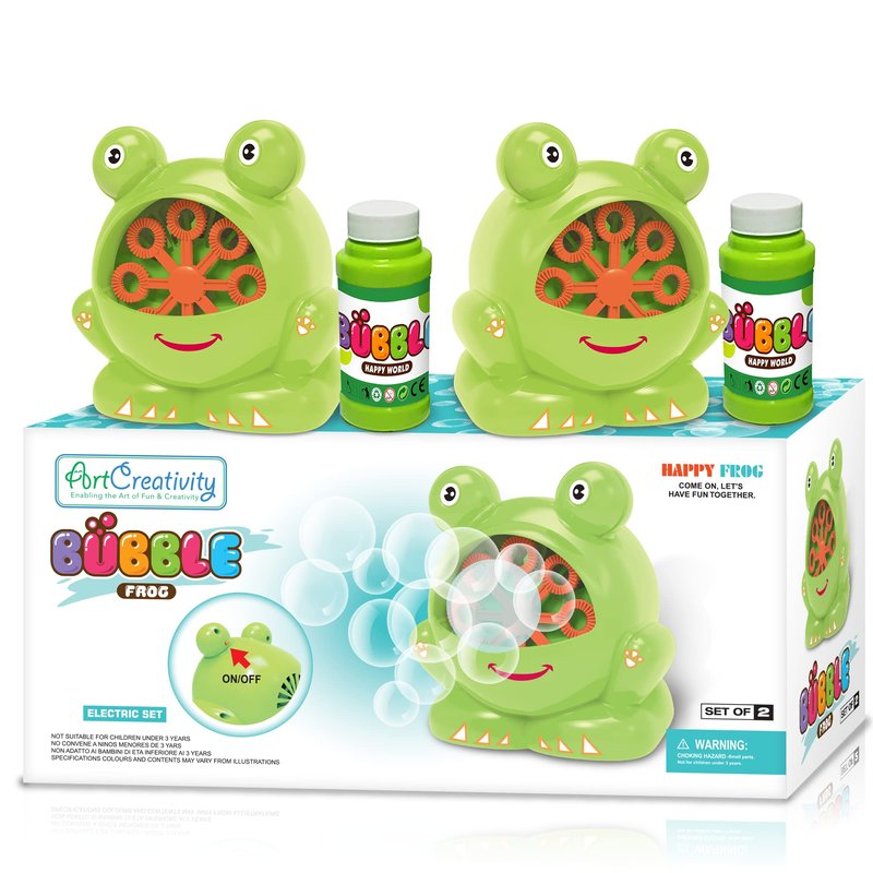 - HOURS OF FUN: Adorable froggies promising tons of bubbly fun! This set includes 2 frog bubble machines and 2 bottles of non-toxic bubble solution. With 2 bubble blower toys in every set, there will be no fighting among the kids and more bubbles for immersive fun.