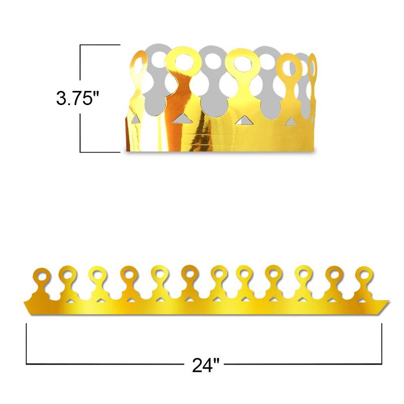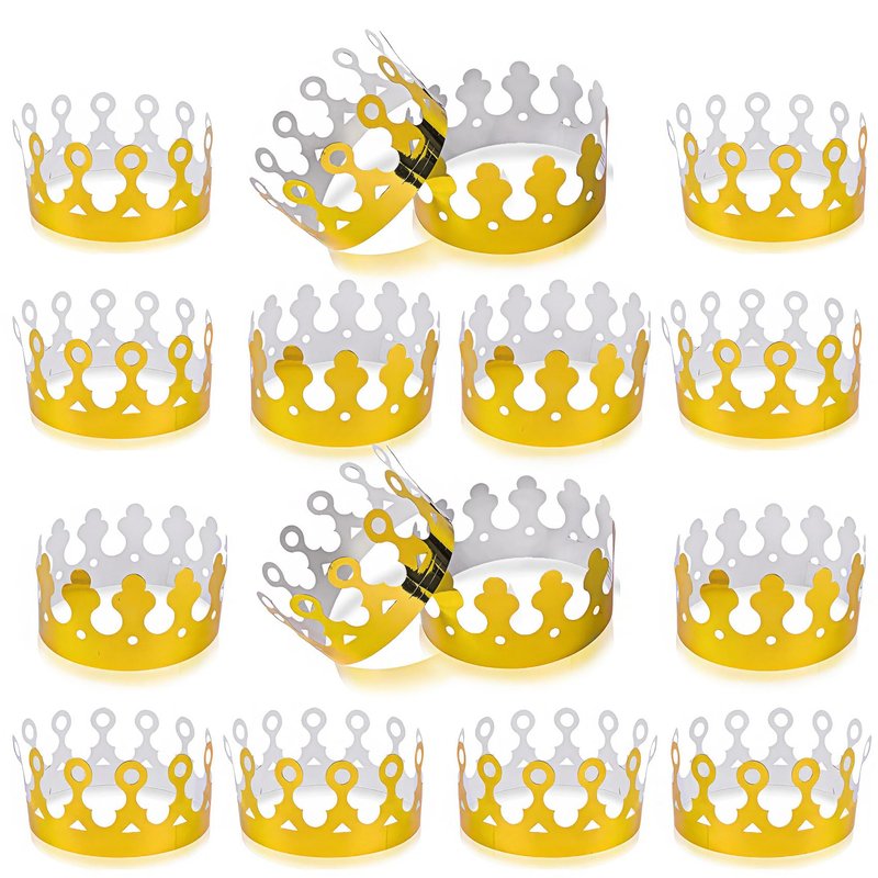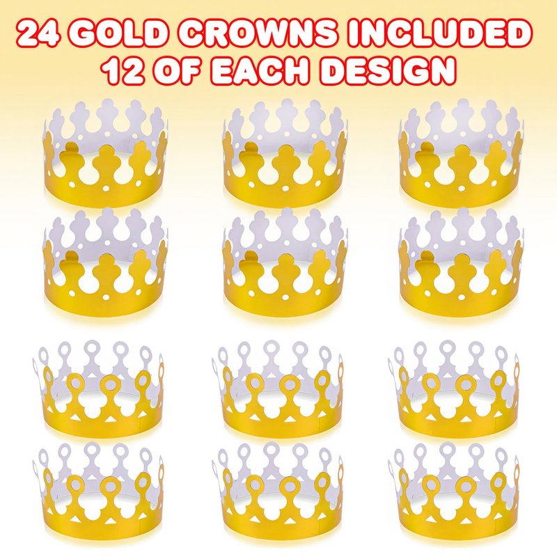 - TOUCH OF ROYALTY: Give those little kings and queens the regal treatment! This set comes with a total of 24 gold foil crown party hats in 2 eye-catching designs (12 of each). Hand them out to those cute party-goers and make that birthday party worthy of royalty.