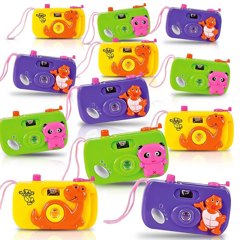 - CLICK TO EXPLORE: Every set comes with 12 toy cameras. Treat those young shutterbugs to hours of camera fun! Peek through the viewfinder, press the click button, and go through a slide of bright and beautiful images that will capture the kids’ imagination and keep them enthralled.