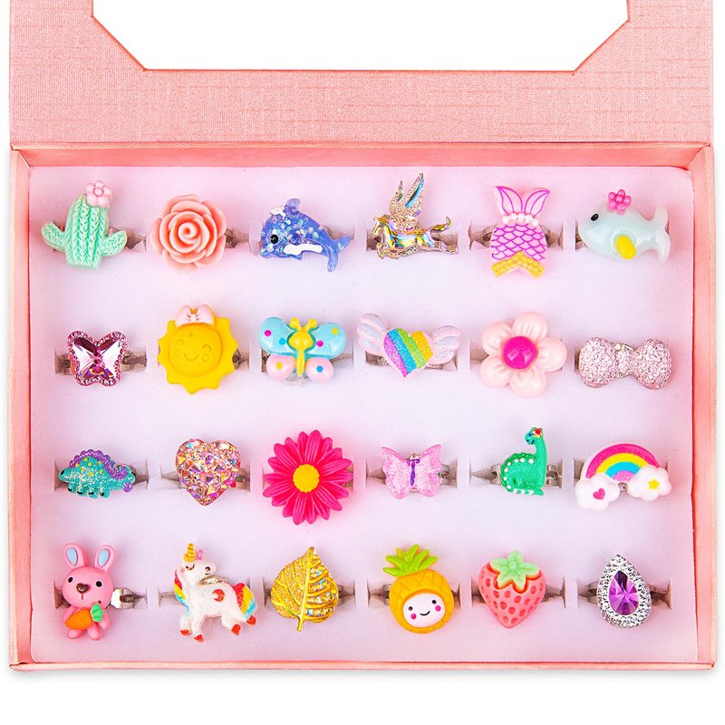 ArtCreativity Little Girls Jewelry Rings in Gift Box, Set of 24 Cute Rings, Lovely Rings for Little Girls, No Duplicates, Girls Jewelry in Gift Box, Pretend Play & Dress Up Rings for Girls Ages 3+