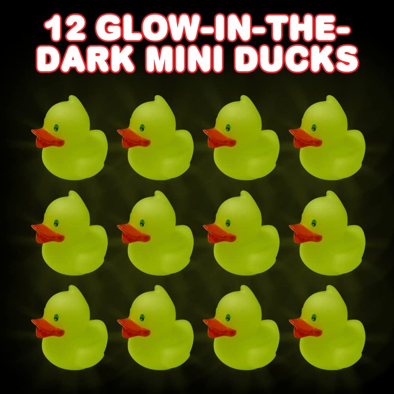 - GLOWING BEAUTIES: Mini ducky toys that will have the kiddies giggling in glee. This pack comes with a SET OF 12 glow-in-the-dark mini ducks that are simply adorable. Our glow-in-the-dark duck toys never disappoint. Bring them out at night and watch wonder take over.