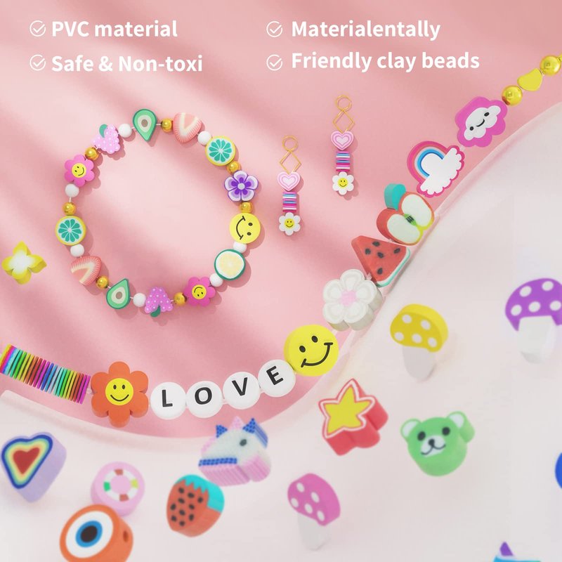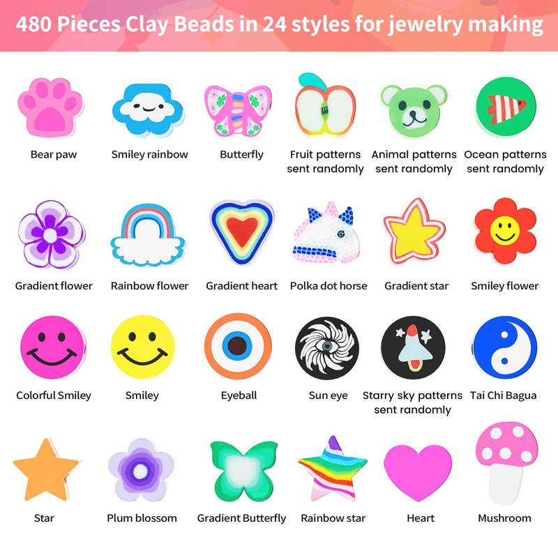 - VARIETY & COLORFUL - Clay beads come in 24 vibrant colors with patterns like fruits, animals, and stars. Girls can give full play to their creativity, choose their favorite patterns, and design colorful personalized bracelets.