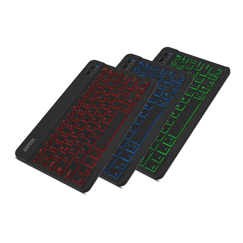 Elegant blue LED backlight with 2 adjustable brightness level, 7 different colors(deep blue, soft blue, bright green, soft green, red, purple, cyan) making typing that much more enjoyable and awesome to look at. Backlight will auto turn off when idle to conserve power for when it is most needed.