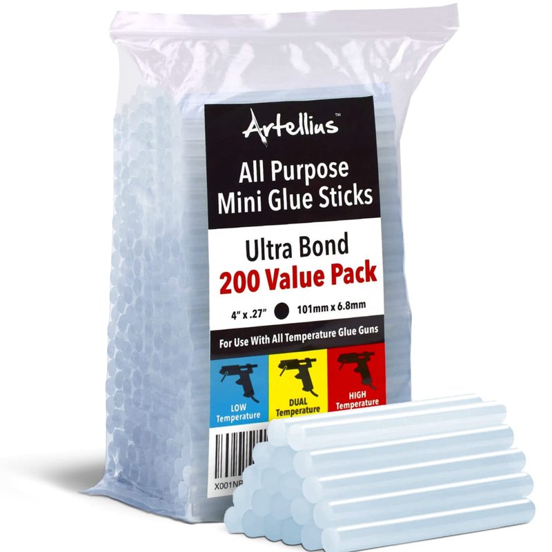 Artellius Mini Hot Glue Sticks (HUGE BULK PACK of 200) 4" and 0.27 Diameter - Compatible with Most Glue Guns