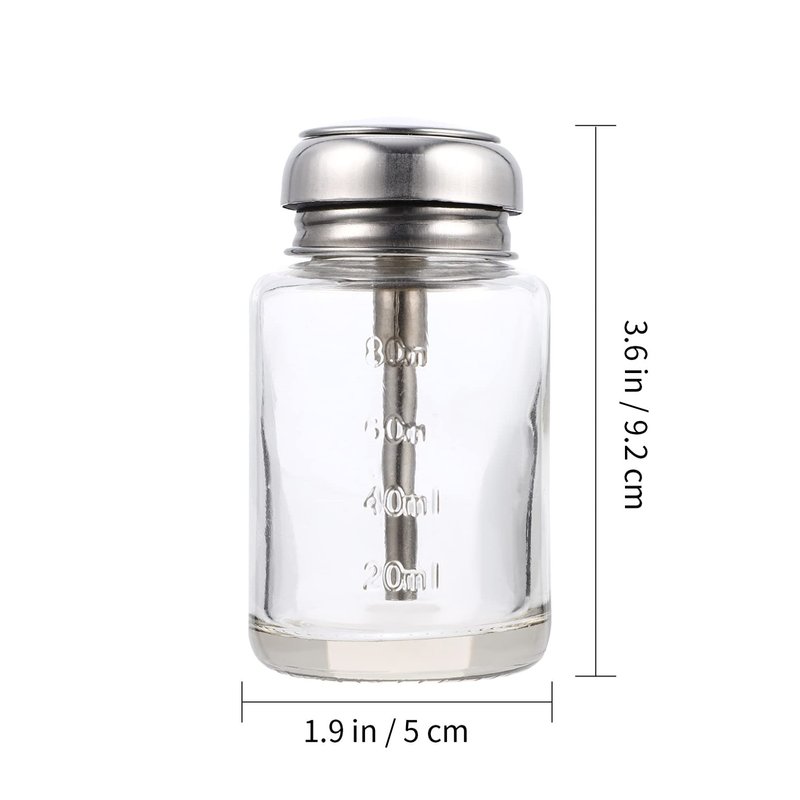 Artibetter Clear Glass Press Bottle Push Down Dispenser Pump Bottle with Metal Cap and Measuring Scales for Storing Nail Polish Remover and Makeup Remover 3.5/ 100ml