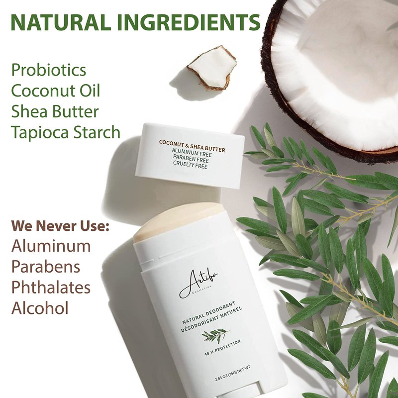 Artifa Natural Deodorant, Aluminum Free for Women and Men with Probiotics, Coconut oil, Shea Butter 2.65 oz (75 g)