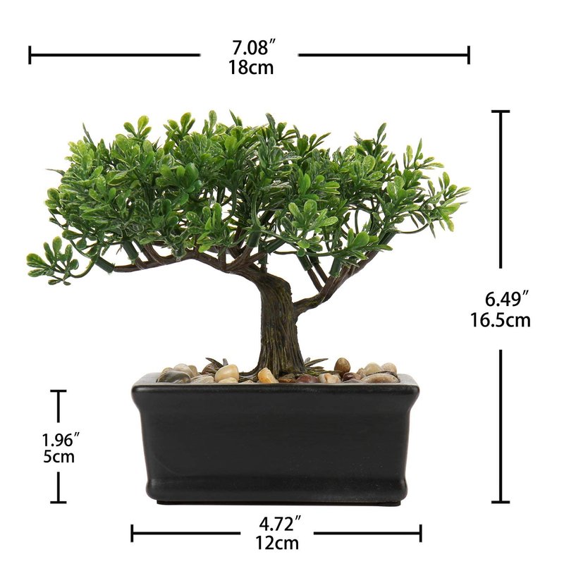 - BONSAI TREE WITH CERAMIC POTS - Artificial potted plants made of high quality PE material, non-toxic, no odor, durable, healthy and environmentally, Vivid color design and high simulation make small fake plant decor very layered and attractive. Mini bonsai tree not only a good home decorations, but also a good gift to your friends. Surprise someone special with one of our most popular artificial pine tree!