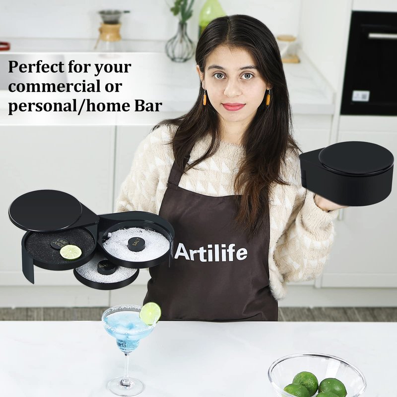 - 【Rim Made Easy】Artilife 3 tier rimmer makes rimmed drinks easy.Made making drinks much faster,works great for parties!