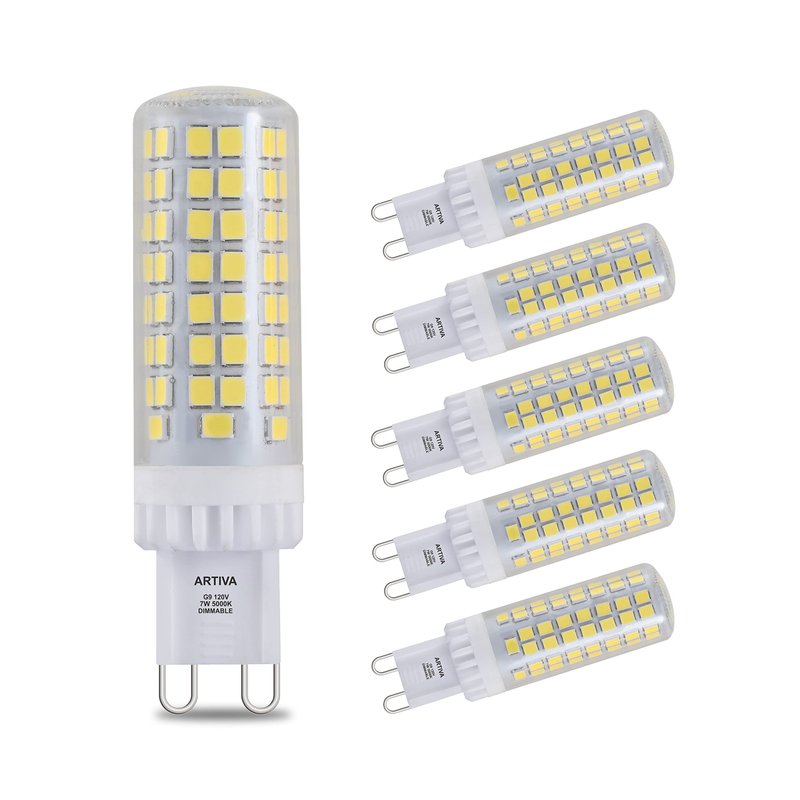 Artiva USA 60W Equivalent, 7W G9 Dimmable LED Light Bulb, 5000K Daylight (Set of 6)