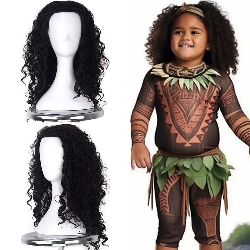 - Anime Character Medium Long Black Fluffy Curly Wigs for The Kids