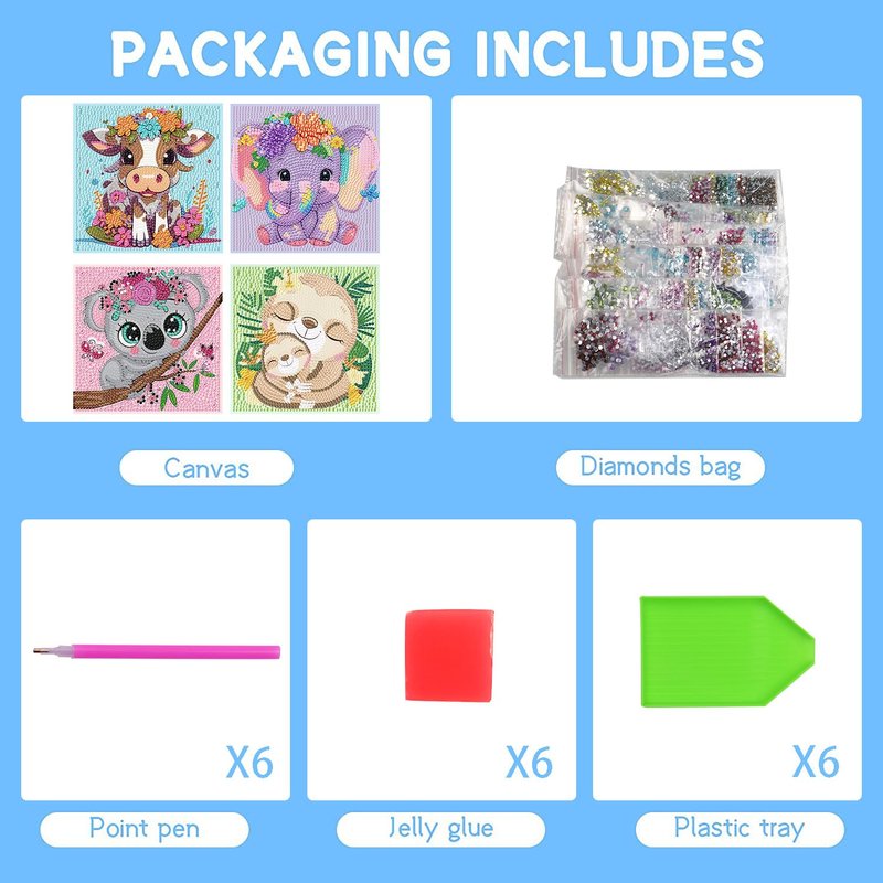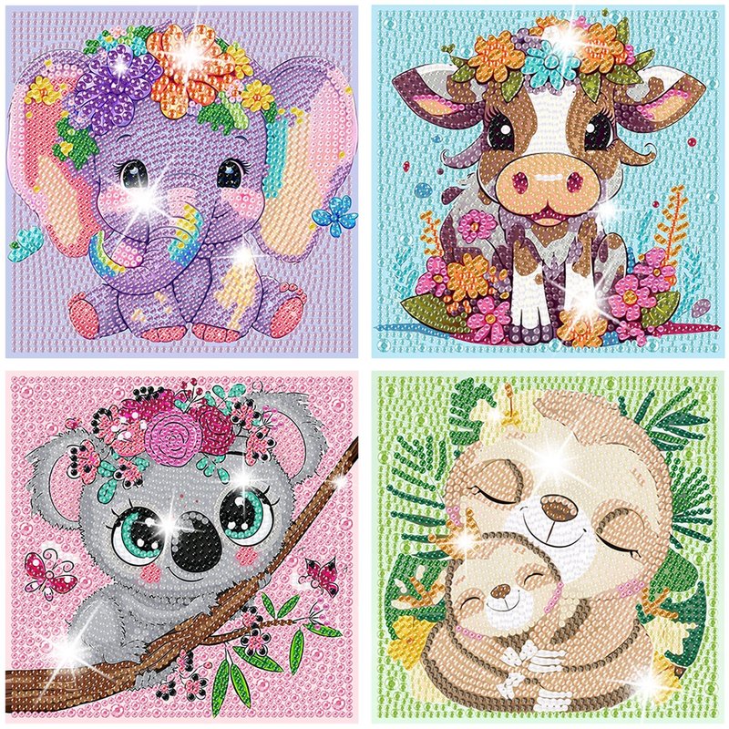 ARTMYRUI 4 Pack Diamond Painting Kits for Kids-Animals Diamond Art for Kids,5D Diamond Gem Art by Number Dots Kits Art and Crafts for Kids Ages 6-8-10-12 Boys & Girls for Birthday Gifts.(6x6inch)