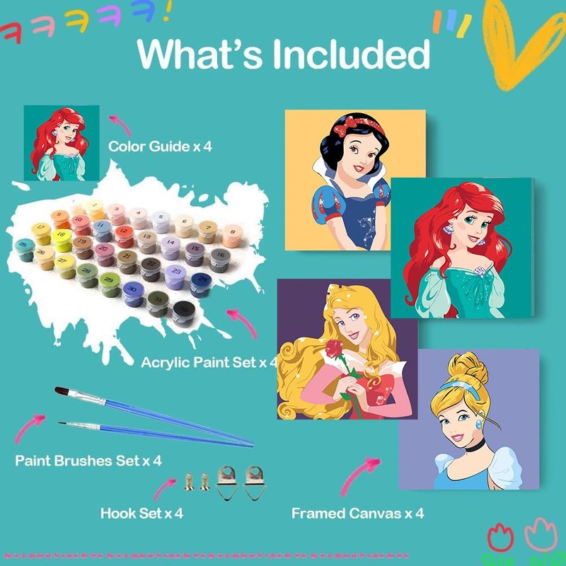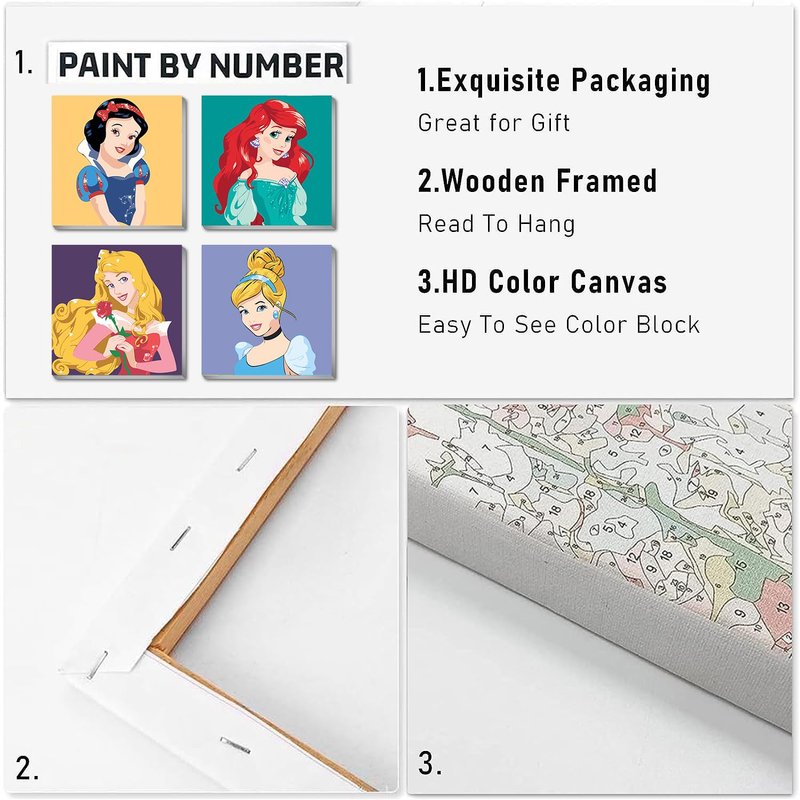 - 【Package Include】Kids Paint by Numbers comes with everything you need. The paint by number kit includes pre-printed textured art canvas (framed), 8 high-quality brushes, matching acrylic paints, and nail clips.